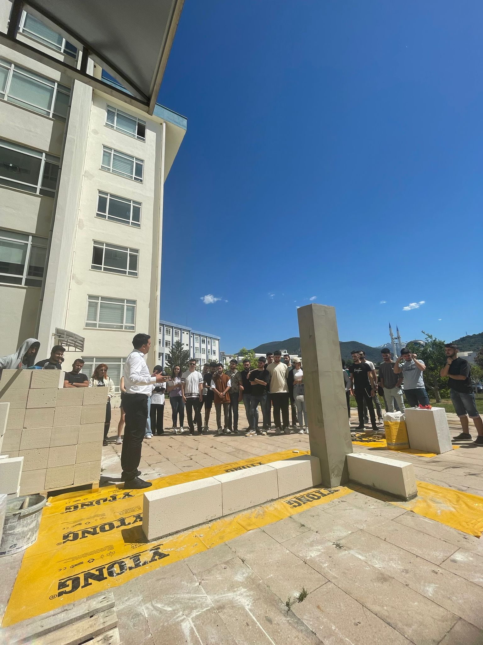 Çok sayıda öğrencinin katıldığı eğitim, YTONG uzmanları tarafından Rafet Kayış Mühendislik Fakültesi bahçesinde yapılmıştır.